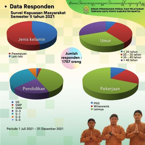 Survei Kepuasan Masyarakat dilakukan secara mandiri pada Dinas Penanaman Modal dan Pelayanan Terpadu Kabupaten Bantul dengan membentuk tim pelaksana kegiatan Survei Kepuasan Masyarakat. Survei dilakukan secara periodik dengan jangka waktu (periode) tertentu yaitu 1 Juli 2021 sampai dengan 31 Desember 2021.